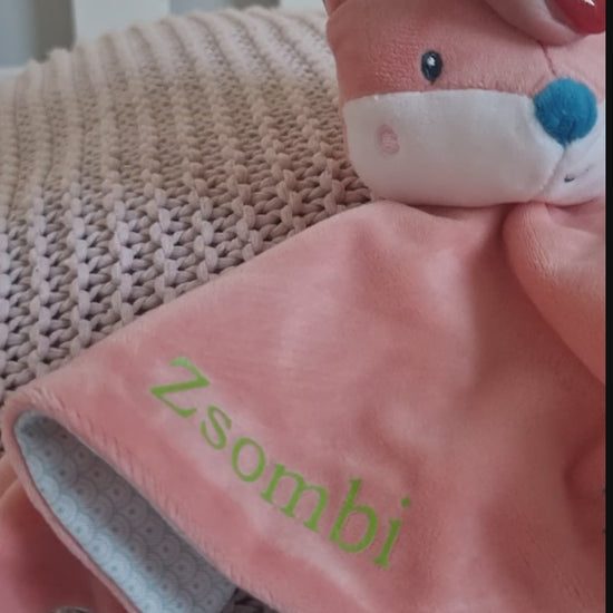 A FoxyFox nyúnyóka különlegessége abban rejlik, hogy személyre szabható. Kérésre a baba neve vagy akár születési dátuma is rákerülhetnek, amelyeket gondosan, szeretettel készítek el. Így ez a puha plüss nemcsak egy alvótárs, hanem egy örök emlék is lesz, amely megőrzi a baba érkezésének legszebb pillanatait. Tökéletes választás babaváróra, keresztelőre vagy babalátogatásra, ha igazán személyes, szívhez szóló ajándékot keresel.