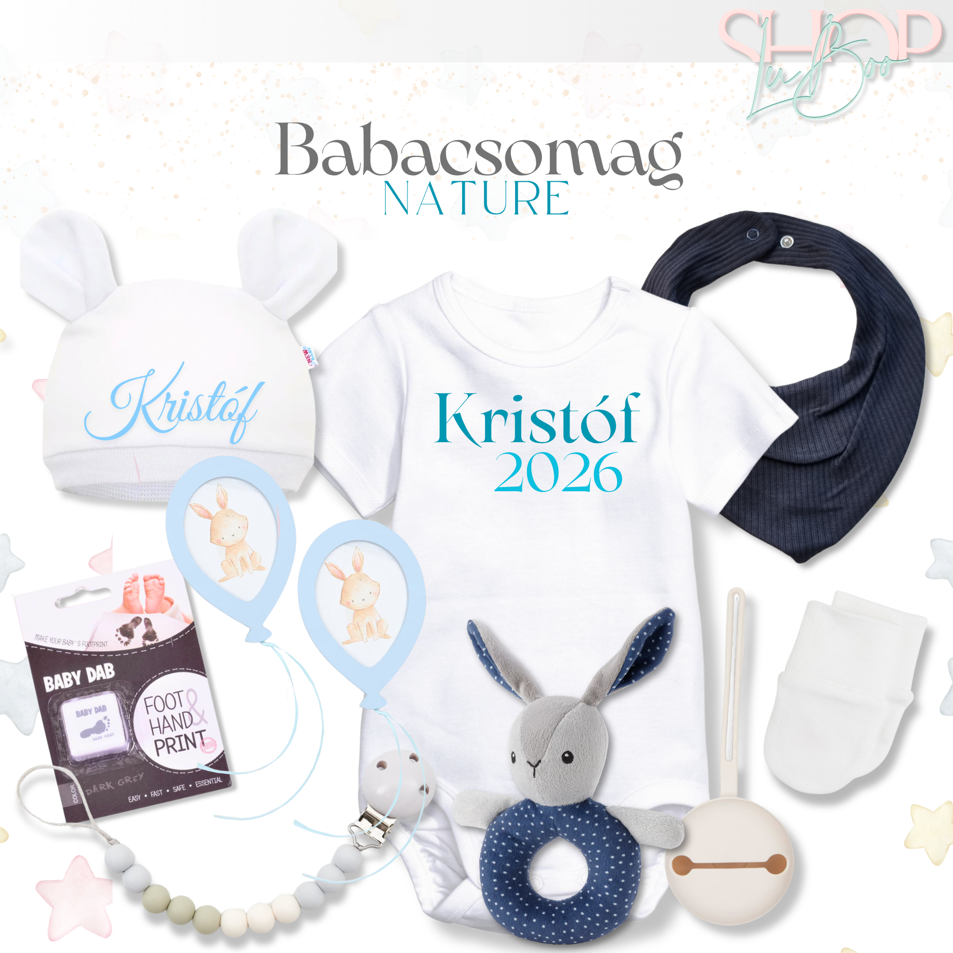 Ez az egyedi Nature Baba Csomag tökéletes választás, ha babát vársz, vagy friss szülőkhöz mégy látogatoba. A csomag elemei a baba nevével készülnek, így igazán különleges és maradó emléket nyújtanak.